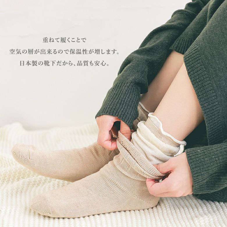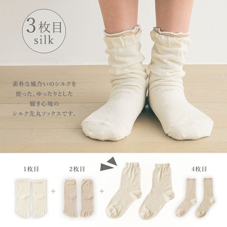 【絹(シルク)先丸ソックス(オフホワイト)】絹95% その他繊維5%