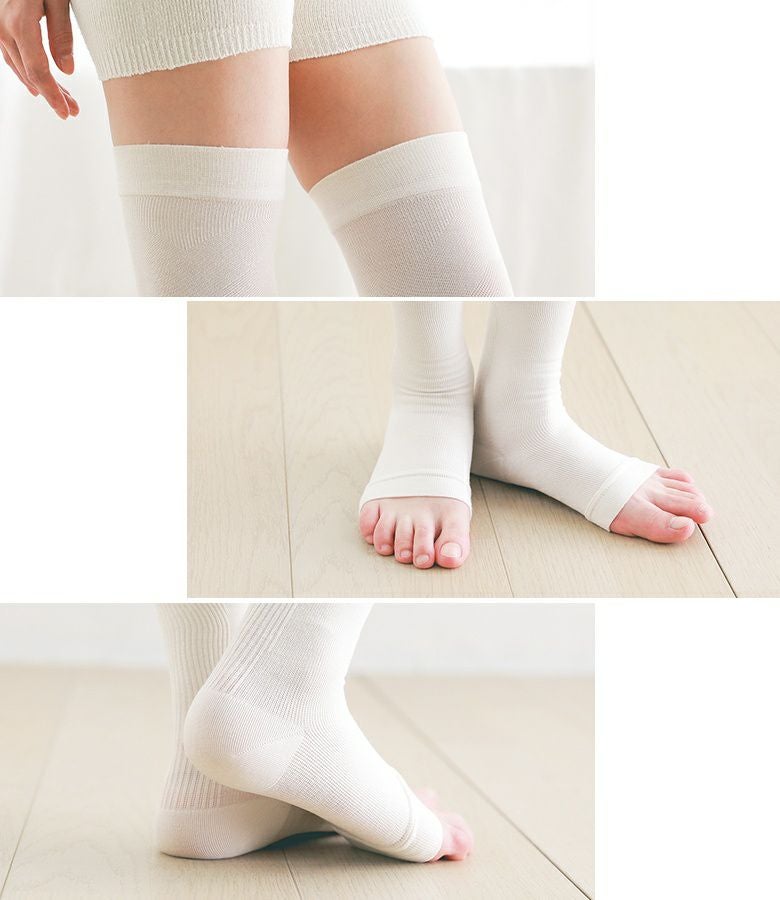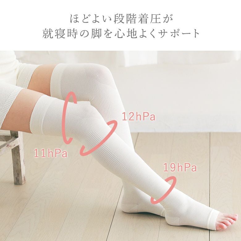 おやすみ時の脚をいたわる♪脚すっきりニーハイ。