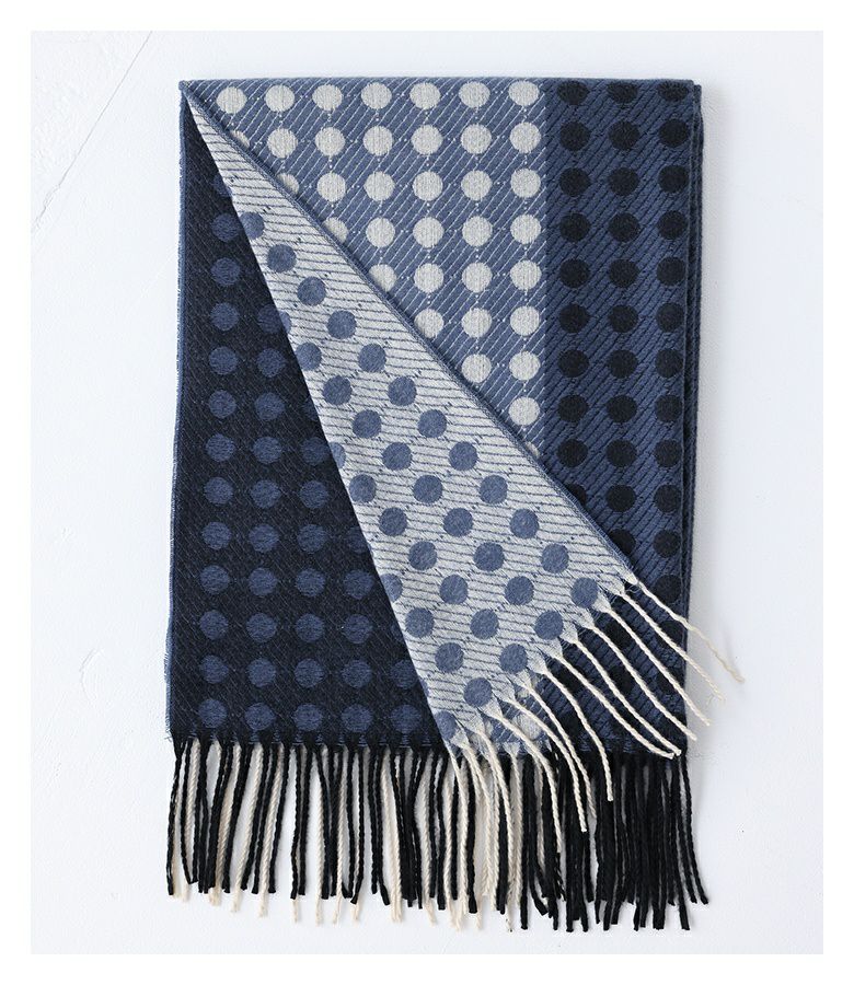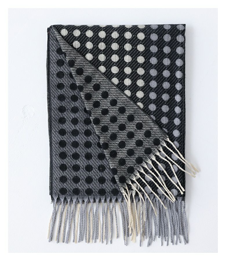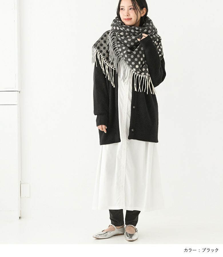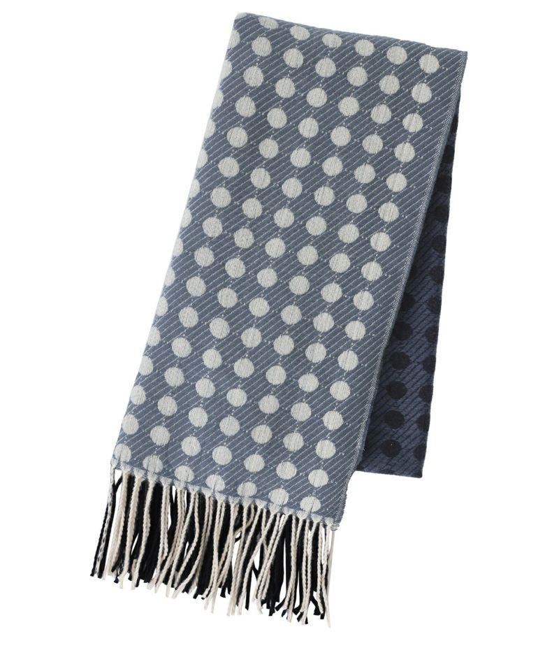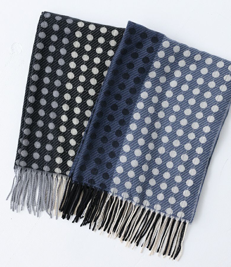 シンプルなコーディネートに個性をプラスするバイカラードットストール。