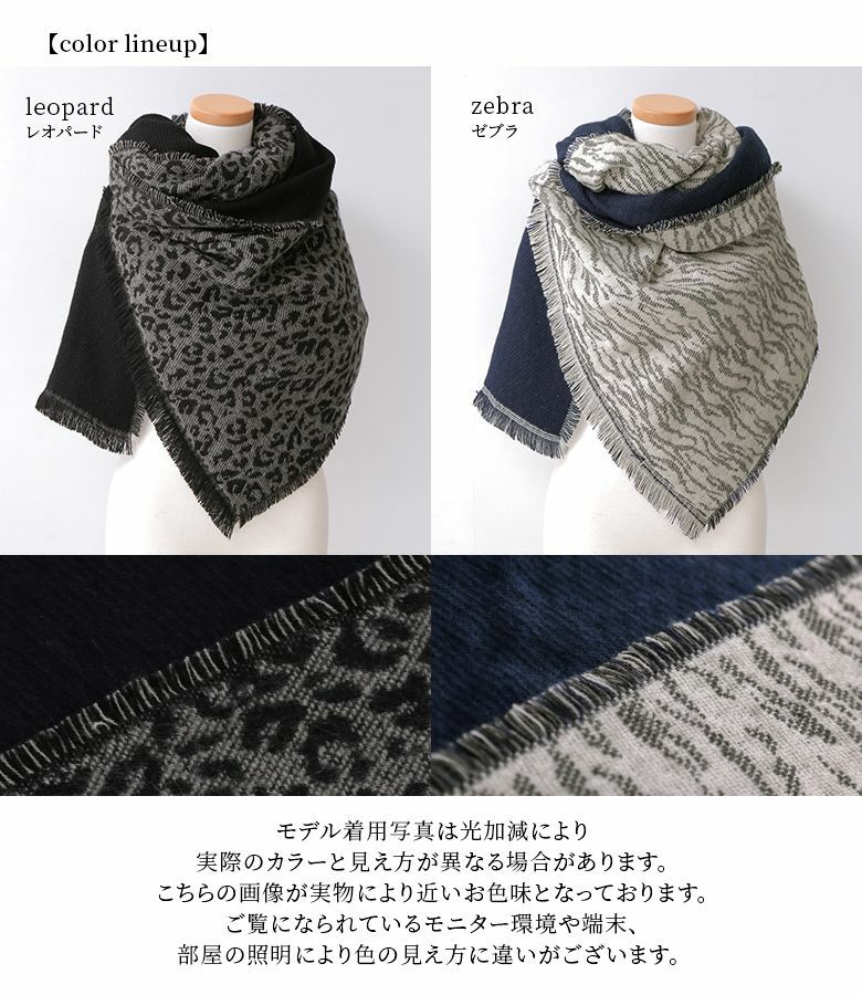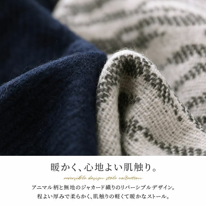 アニマル柄×無地のジャカード織りリバーシブルデザインストールです。