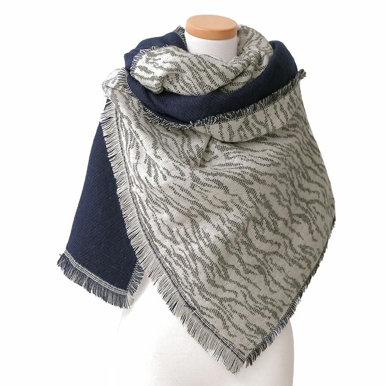 こなれたボリューム感のでる優れモノ、アニマル柄リバーシブルストールです。