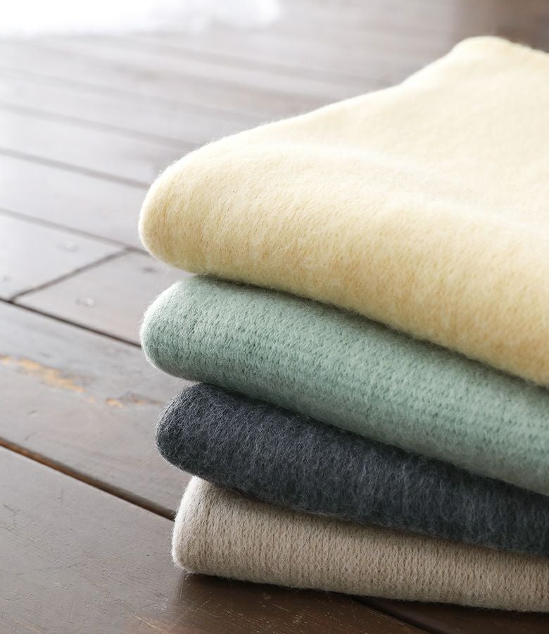 ライトグリーン購入しました。淡いキレイな色でした。ふわふわで柔らかくて暖かいです。