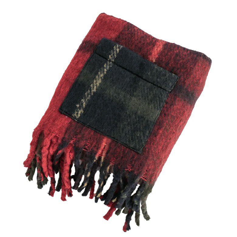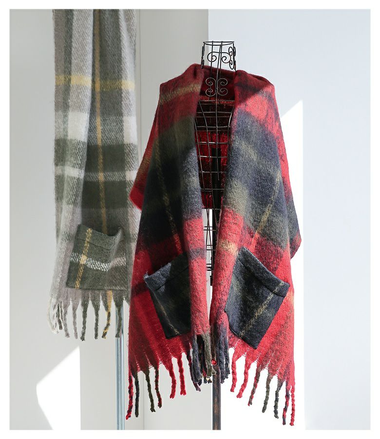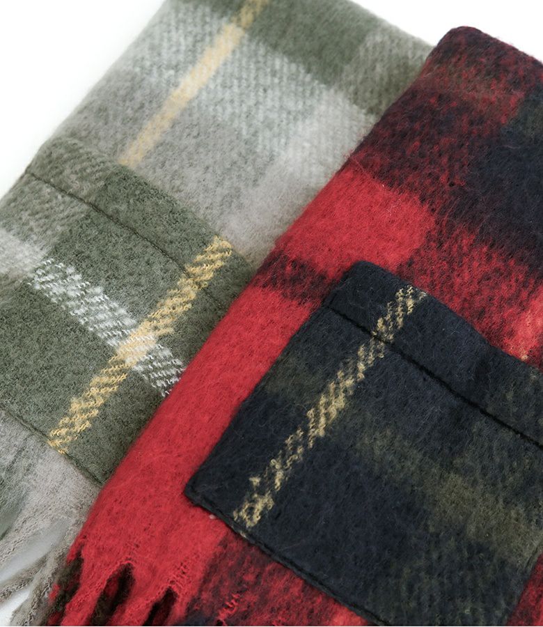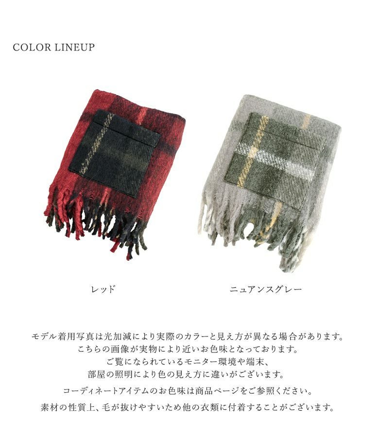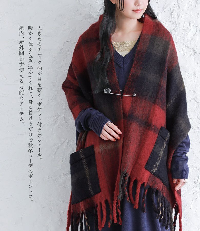 『大判チェック柄ポケット付ショール』