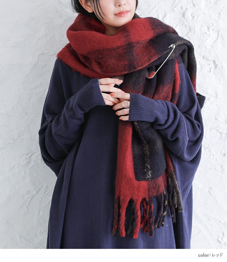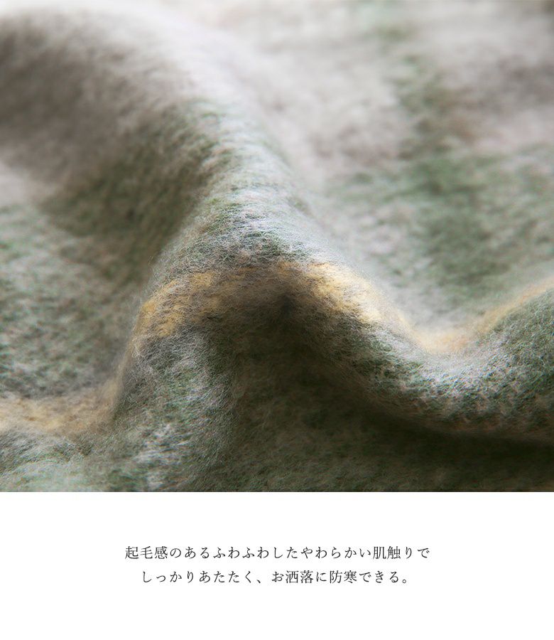 暖かく身体を包み込んでくれるチェック柄ストール。