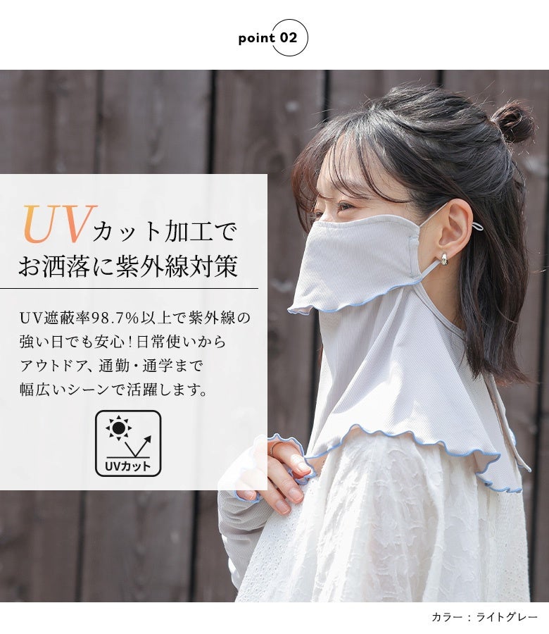夏のお出かけに最適!冷感UVリブメローフェイス&ネックカバー。