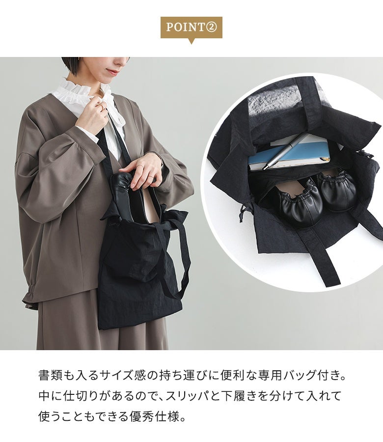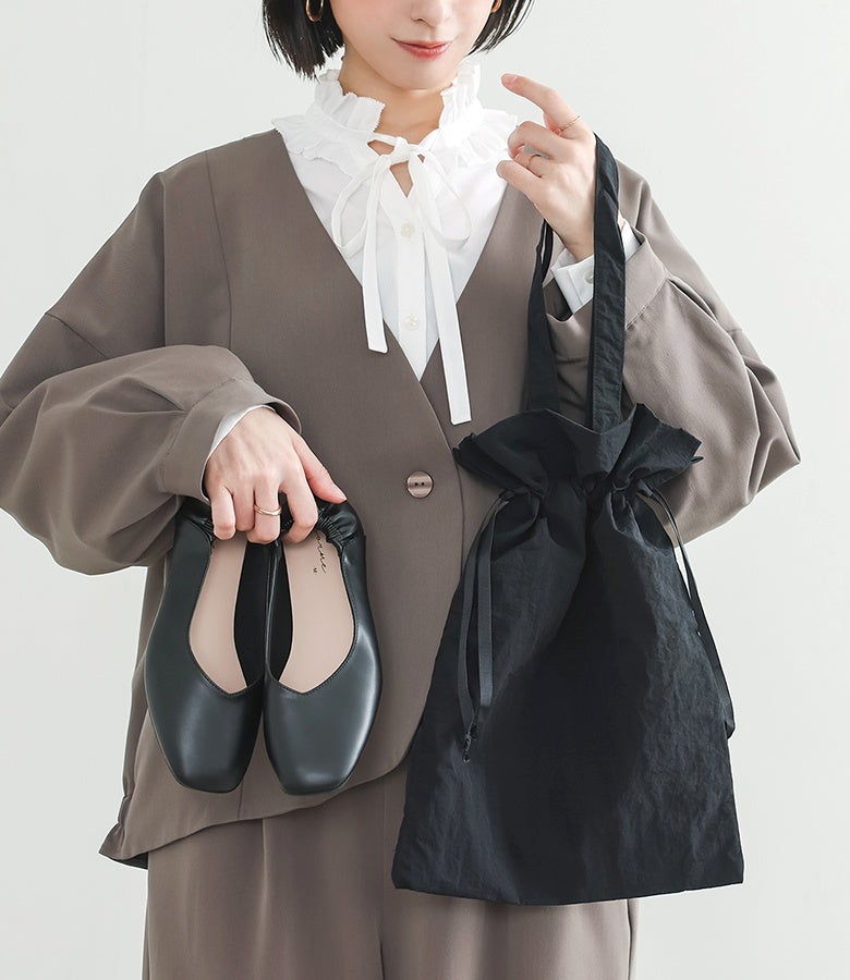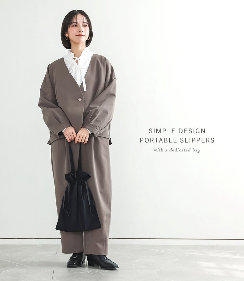 選べる2サイズ展開!品よく馴染む収納バッグ付き携帯シューズ。