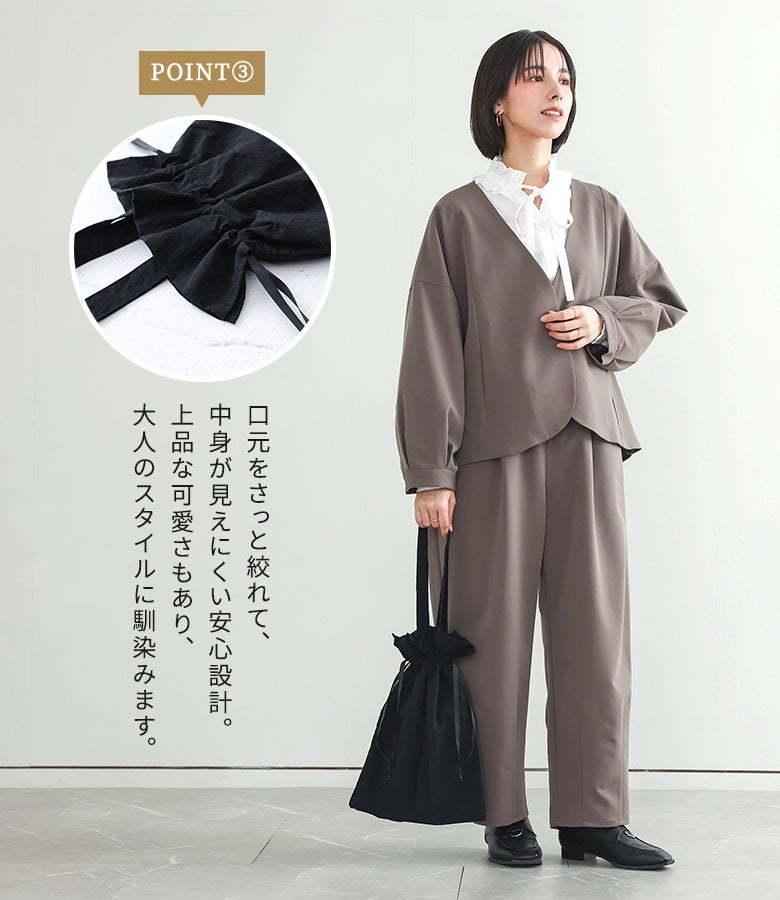その時のトレンドと、ベーシックを両立させ、落ち着いたデザインで毎日着られる大人カジュアルを提案。