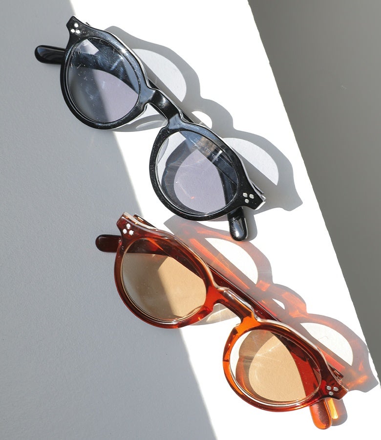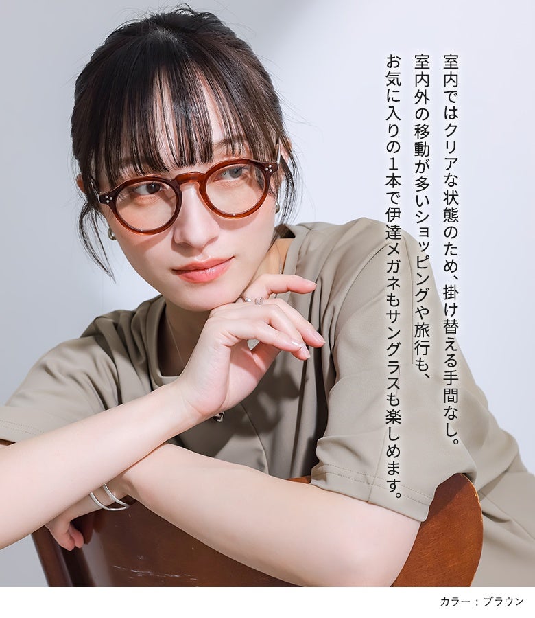 紫外線の量でレンズの色が変化する調光レンズサングラス。