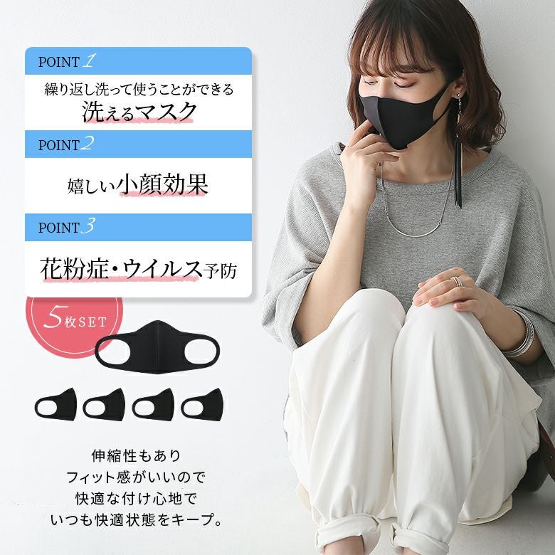 繰り返し洗って使えるマスク5枚SET。