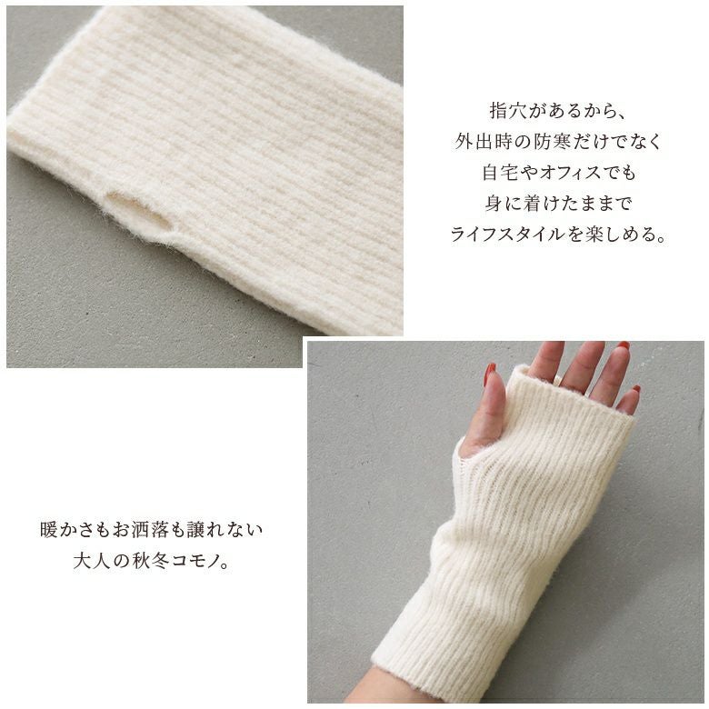 フィンガーレス仕様&親指部分には指穴付きだから、外出時の防寒だけでなく自宅やオフィスでも身に着けられてデイリー使いにぴったりです。