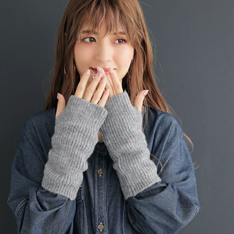 秋冬コーデのポイントになる、シンプルニットハンドウォーマーです。