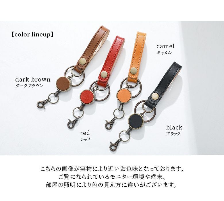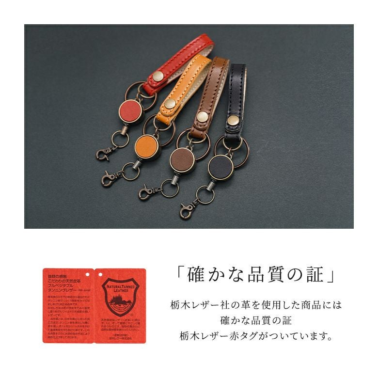 ひとつひとつ手作りされており、シンプルでありながら流行に左右されない風格と高いデザイン性を併せ持つリールストラップ。