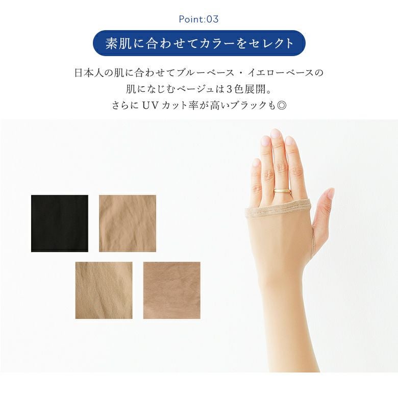日本人の肌に合わせてブルーベース・イエローベースの肌になじむベージュは3色展開。さらにUVカット率が高いブラックもご用意しました。