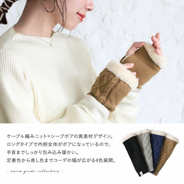 『ケーブル編みロングニットハンドウォーマー』