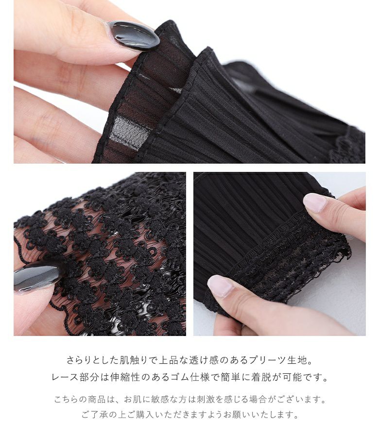 手元に華やかさをプラスするレースデザインの付け袖。