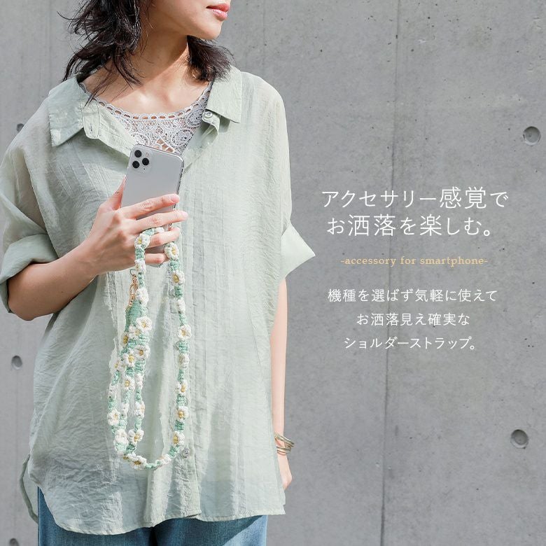 お花のモチーフがアクセントになるショルダーストラップ♪