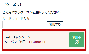 利用中(緑色)アイコンになっているクーポンが適用されます。