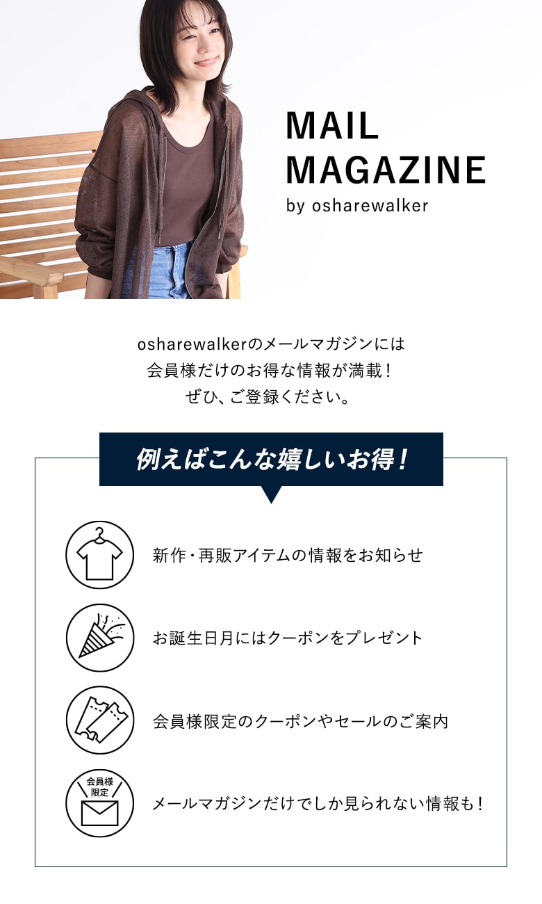 メールフィルタをご利用されている場合は【info@osharewalker.co.jp】を受信できるよう、設定をお願いいたします。