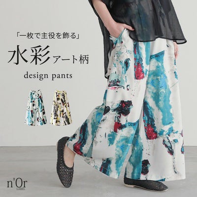 この柄に一目惚れして購入しました。 涼し気で柄がちょっとゴチャゴチャしてトップスと合わせずらそうに見えるけど意外と色んな服と相性よく、とても気に入ってます。