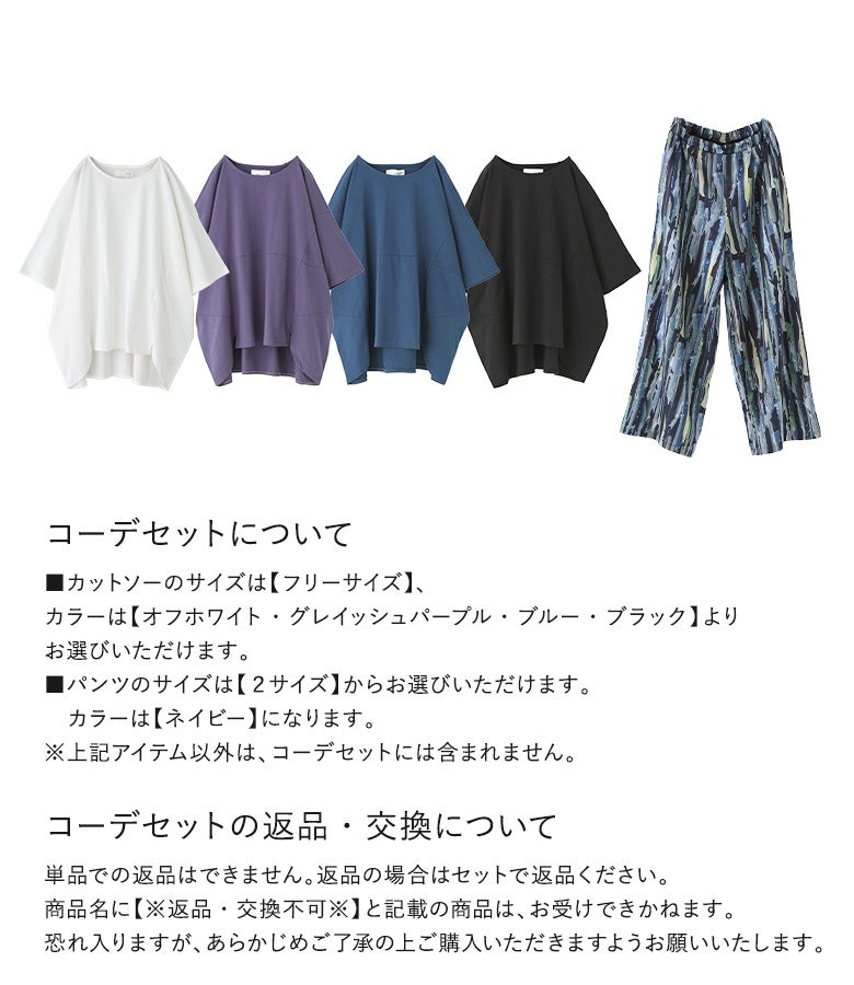 他の画像を見る 届いてすぐにお洒落に変身2点コーデSET♪ 『汗じみ防止切替コクーンカットソー×水彩プリントワイドパンツコーデ2点SET』【メール便不可】【40】 販売開始前です。 販売期間 2026/04/10 10:00 〜 2027/04/08 23:59 ¥ 7,970 税込 (0)