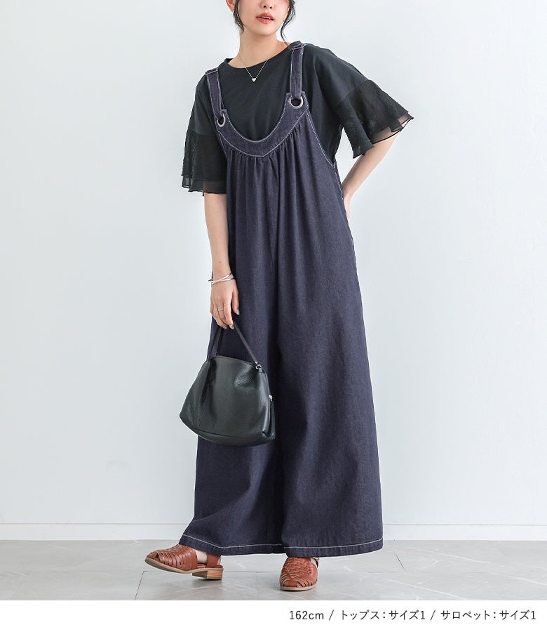 他の画像を見る 届いてすぐにお洒落に変身2点コーデSET♪ 『汗じみ防止ひらりレース袖カットソー×ワイドデニムサロペットコーデ2点SET』【メール便不可】【40】 販売開始前です。 販売期間 2026/04/10 10:00 〜 2027/04/08 23:59 ¥ 9,570 税込 (0)