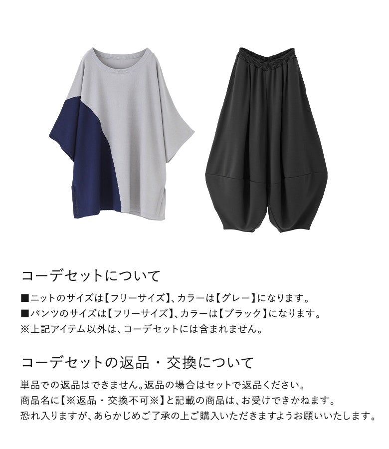 他の画像を見る 届いてすぐにお洒落に変身2点コーデSET♪ 『冷感ドルマン配色ニット×ポンチコクーンパンツコーデ2点SET』【メール便不可】【30】 販売開始前です。 販売期間 2026/04/11 10:00 〜 2027/04/08 23:59 ¥ 8,550 税込 (0)