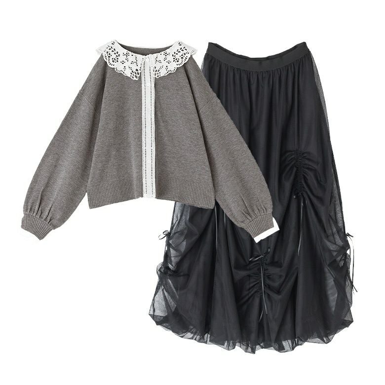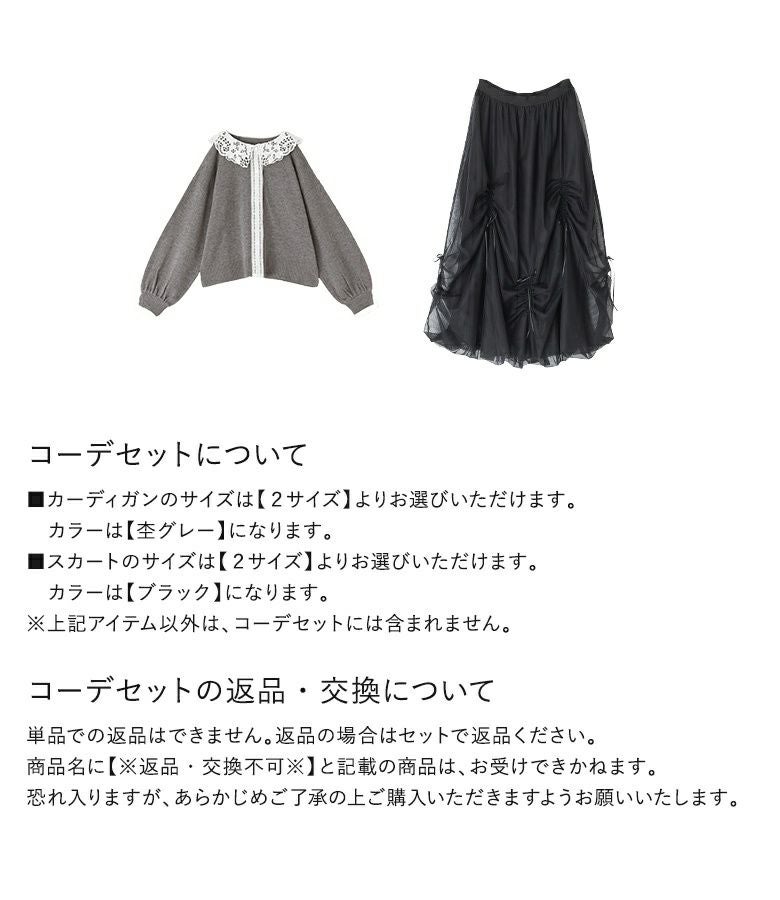 他の画像を見る 送料無料★届いてすぐにお洒落に変身2点コーデSET♪ 【送料無料】『レース襟ニットカーディガン×リボンドロストチュールバルーンスカートコーデ2点SET』【メール便不可】【40】 ¥ 15,950 税込 (0)