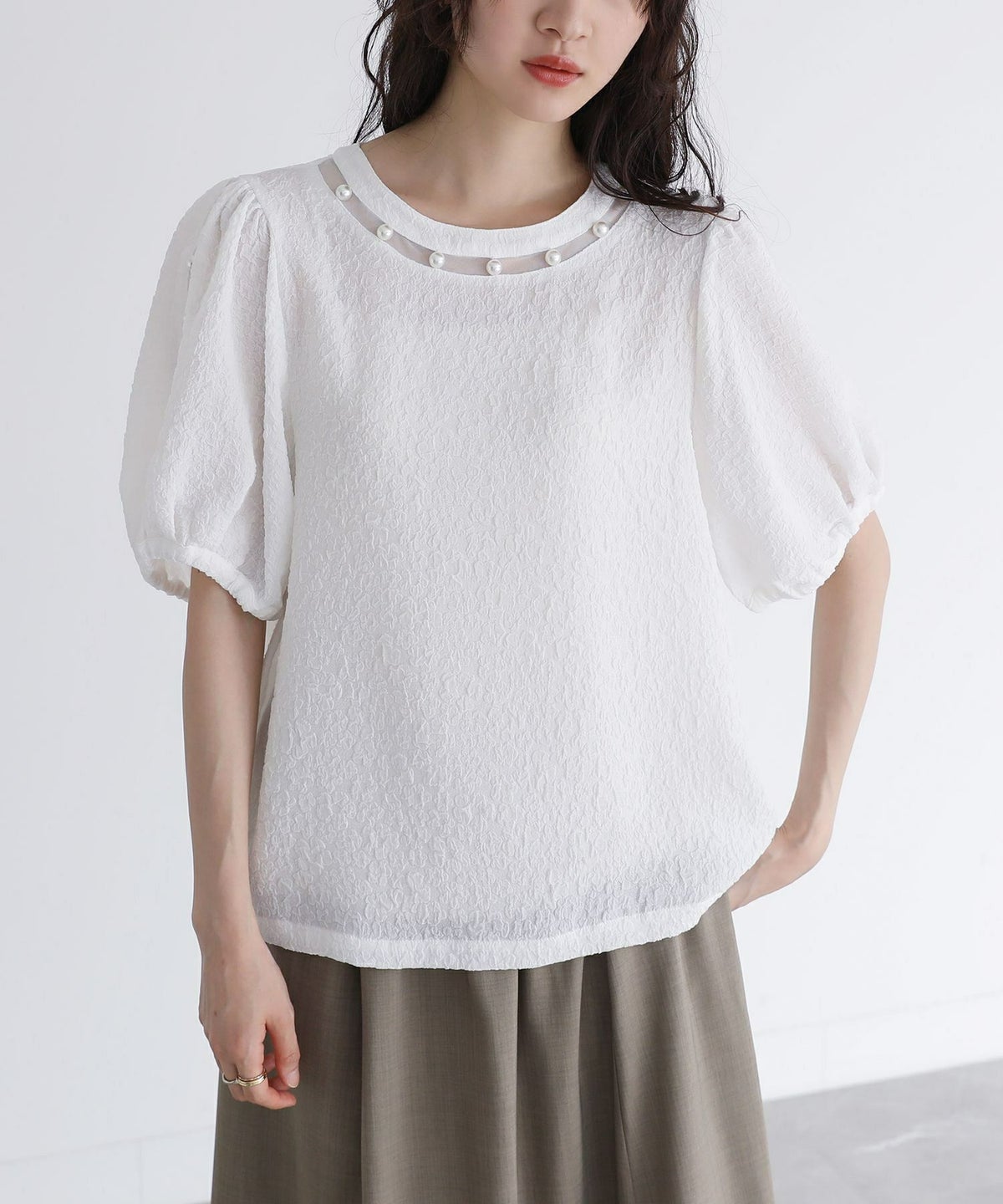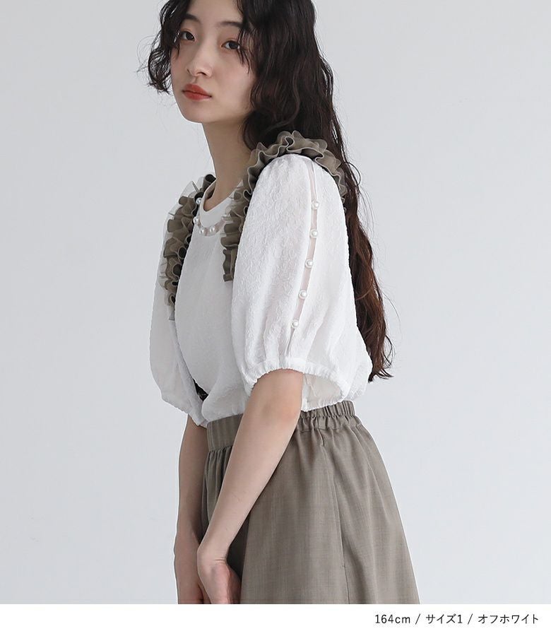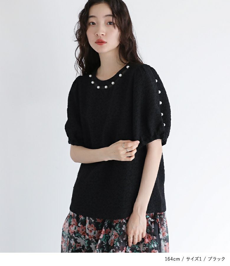 他の画像を見る 選べる2サイズ展開!襟にフェイクパールをあしらった華やかなブラウス。 『somari imaginationフェイクパール付きフラワージャカードブラウス』【メール便不可】【20】 ¥ 4,980 税込 (0)