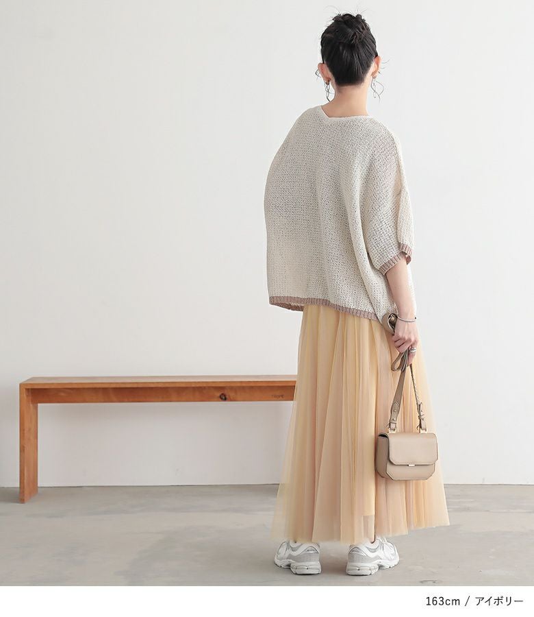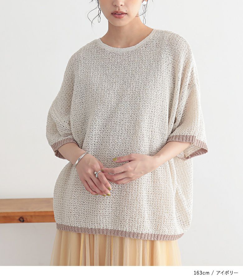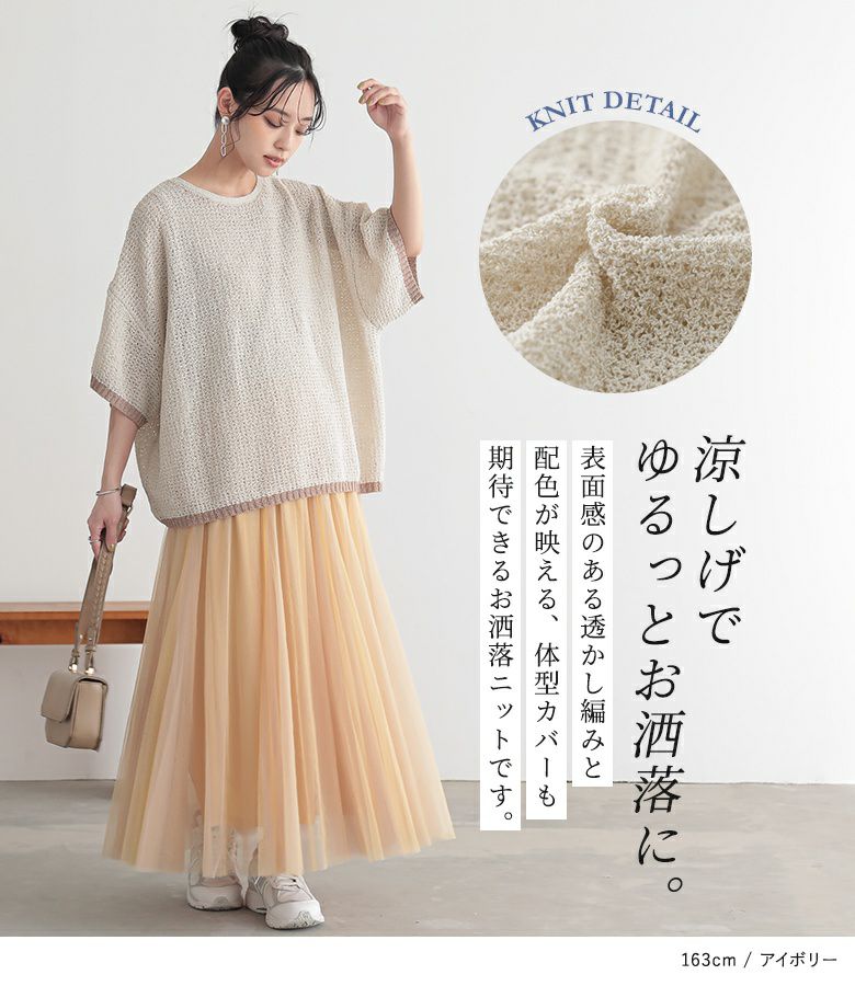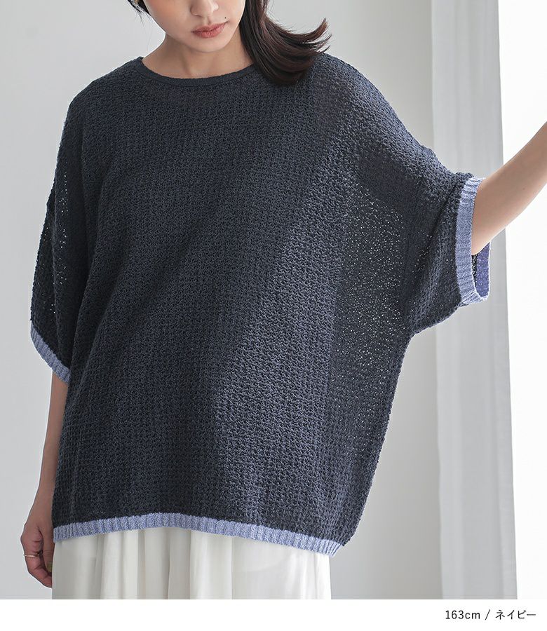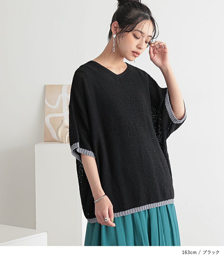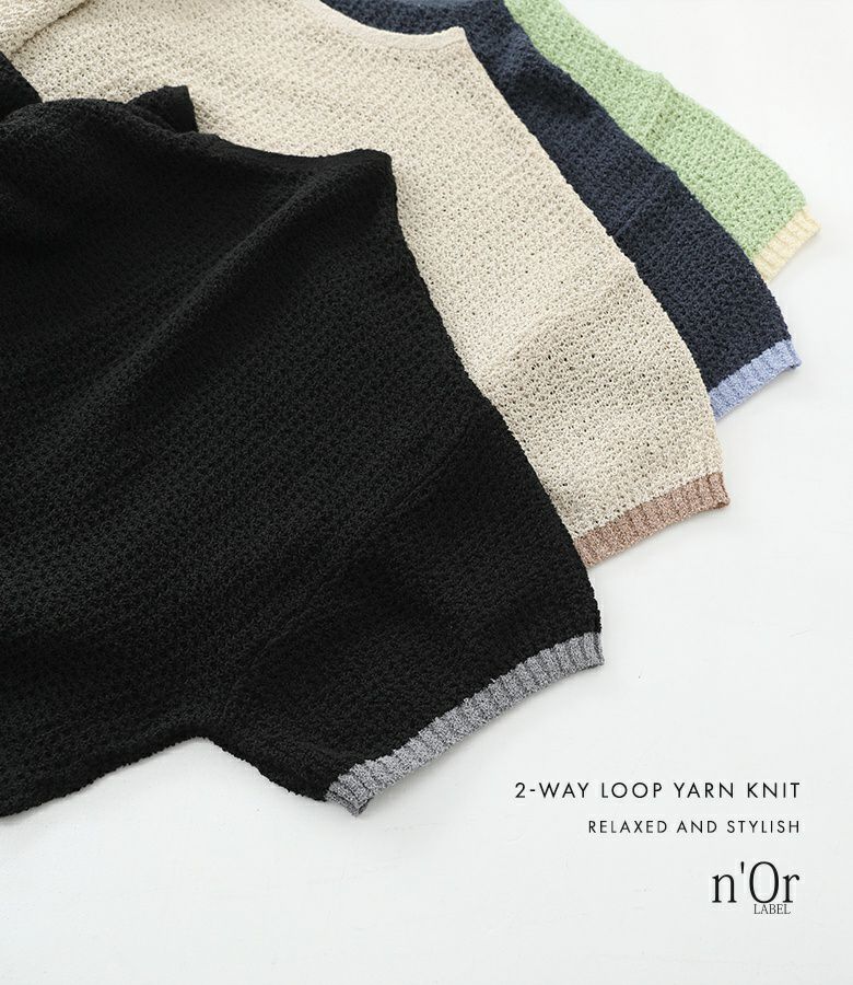 他の画像を見る 表面感のある透かし編みと配色が映える、体型カバーも期待できるお洒落ニット。 『n'OrLABEL前後2wayループヤーン配色ニット』【メール便不可】【20】 ¥ 3,960 税込 5.00 (1)
