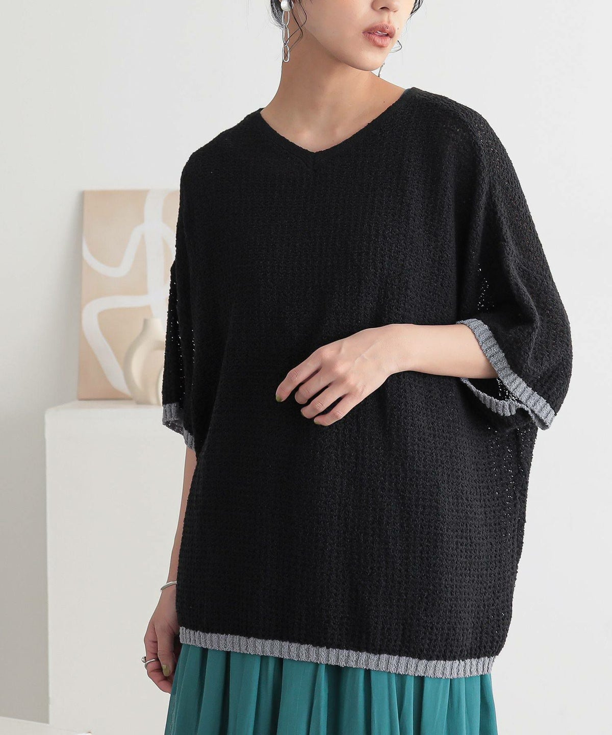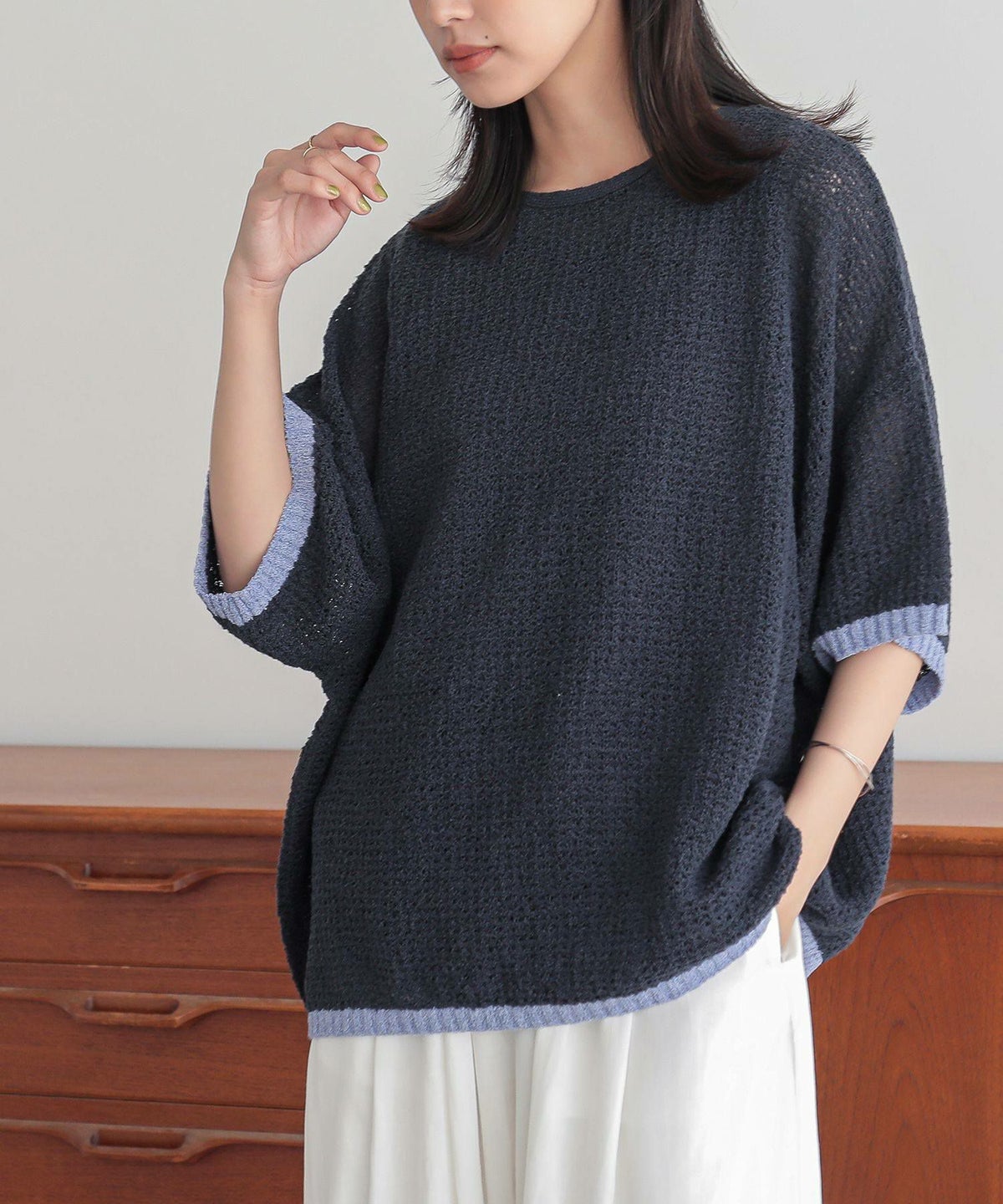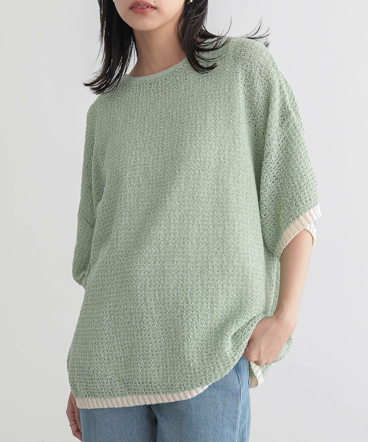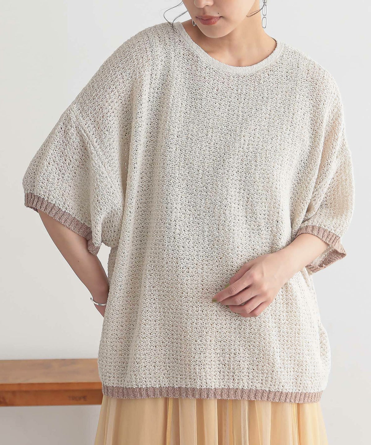 他の画像を見る 表面感のある透かし編みと配色が映える、体型カバーも期待できるお洒落ニット。 『n'OrLABEL前後2wayループヤーン配色ニット』【メール便不可】【20】 ¥ 3,960 税込 5.00 (1)