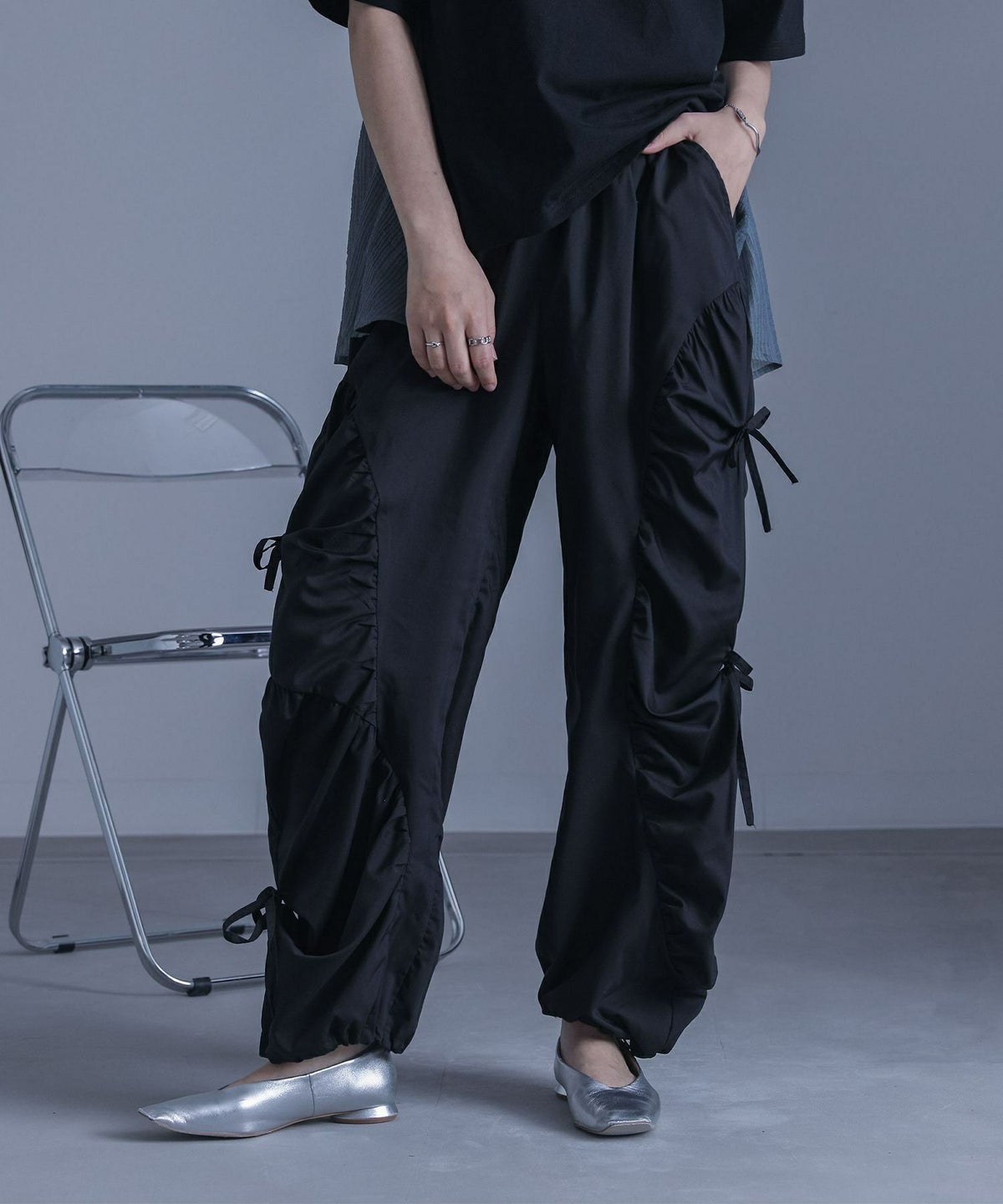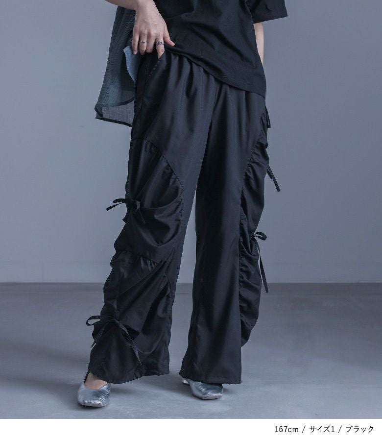 他の画像を見る 選べる2サイズ展開!左右非対称に切り替えたギャザーとリボンデザインがポイントになったパンツ。 『kOhAKUギャザー切替裾ドロストパンツ』※メール便可※【10】 ¥ 6,980 税込 (0)