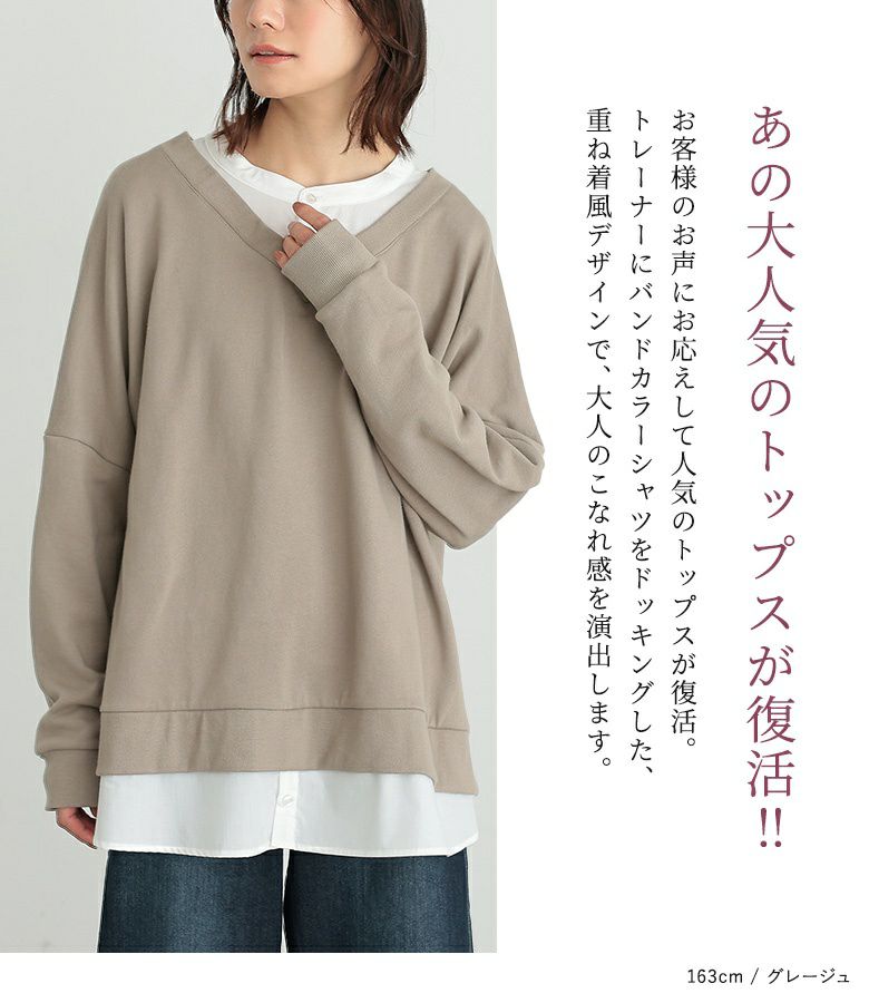 他の画像を見る 【1/25販売】異素材で魅せるレイヤード風Vネックスウェット♪ 『n'OrLABELシャツドッキングVネックスウェット』【メール便不可】【20】 ¥ 4,980 税込 4.00 (11)
