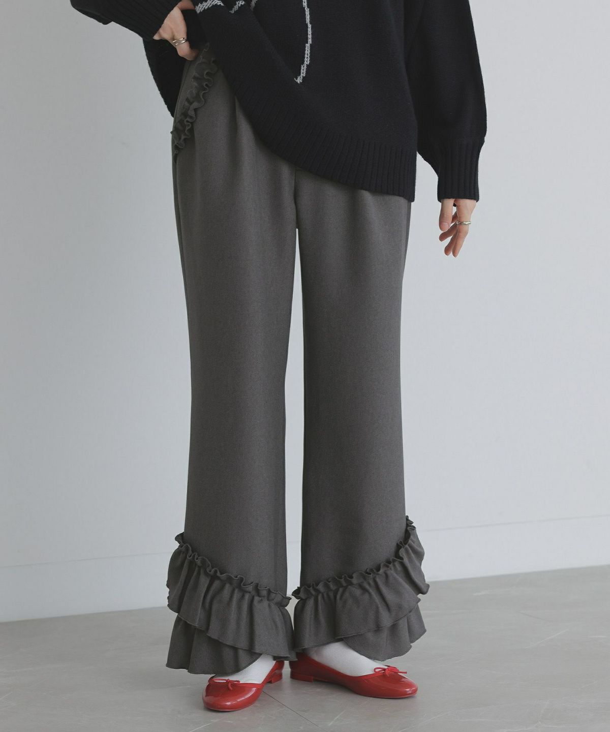 他の画像を見る 選べる2サイズ展開!裾のフリルディテールが目を惹くキレイめ印象のフレアパンツ。 『somari imagination裾フリルフレアパンツ』【メール便不可】【30】 ¥ 6,980 税込 (0)