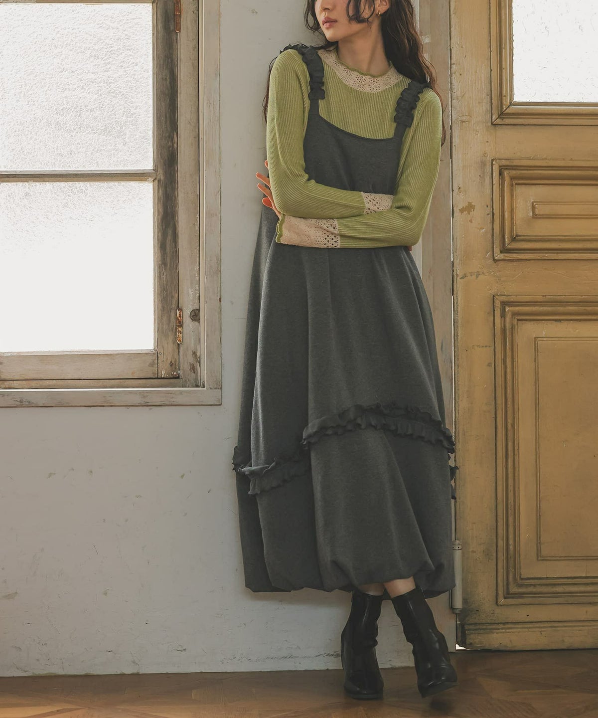 他の画像を見る 選べる2サイズ展開!シンプルな中にロマンティックな要素をプラスしたジャンパースカート。 【送料無料】『somari imagination裏シャギーフリルバルーンジャンスカ』【メール便不可】【40】 ¥ 8,980 税込 4.75 (4)
