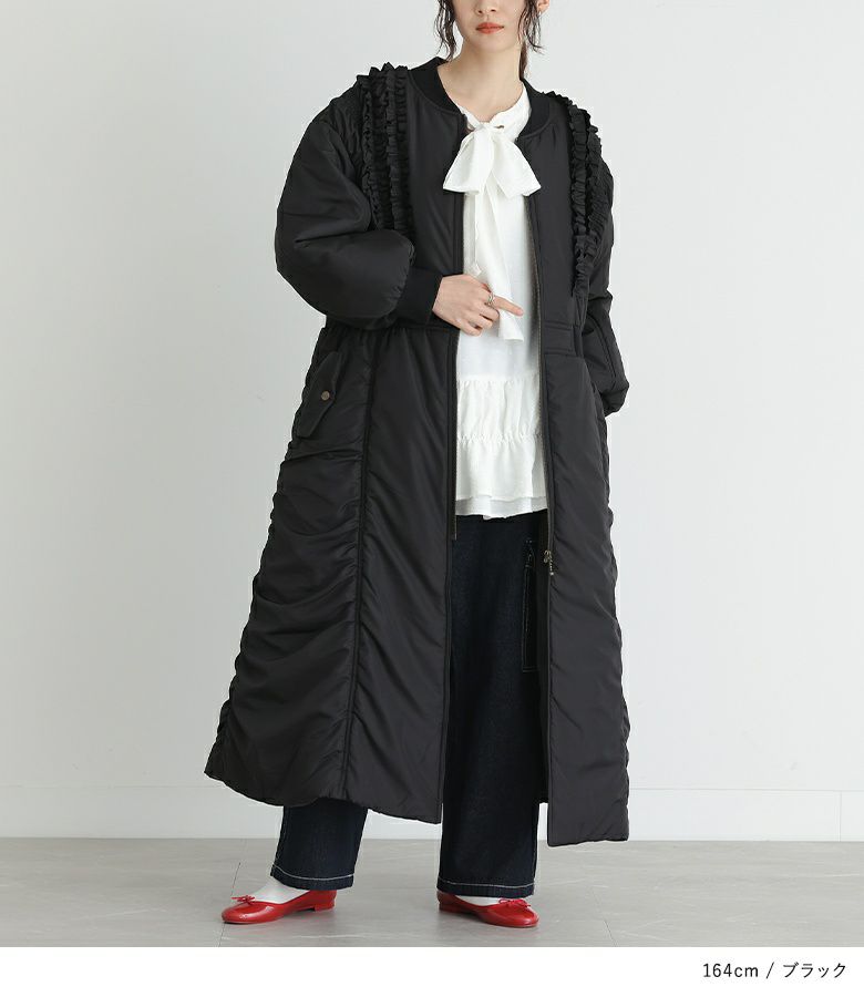 他の画像を見る MA-1風のデザインとフリルディテールを組み合わせた中綿入りロングコート。 【送料無料】『somari imaginationMA-1中綿フリルロングコート』【メール便不可】【90】 ¥ 14,980 税込 5.00 (1)