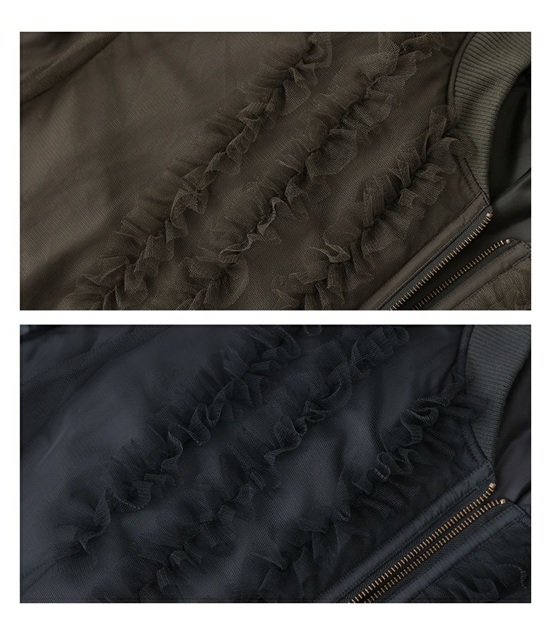 他の画像を見る チュールをレイヤードしたMA-1風のミドルブルゾン。 【送料無料】『somari imaginationチュールフリルMA-1中綿ブルゾン』【メール便不可】【50】 ¥ 12,980 税込 (0)