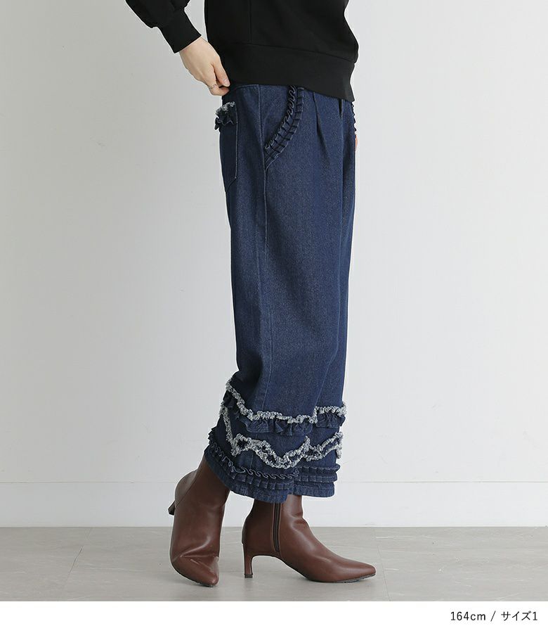 他の画像を見る 選べるM~3Lサイズ展開!唯一無二の存在感を醸し出す、裾フリルデニム♪ 『somari imaginationフリルデザインクロップドデニムパンツ』【メール便不可】 ¥ 7,900 税込 4.25 (4)
