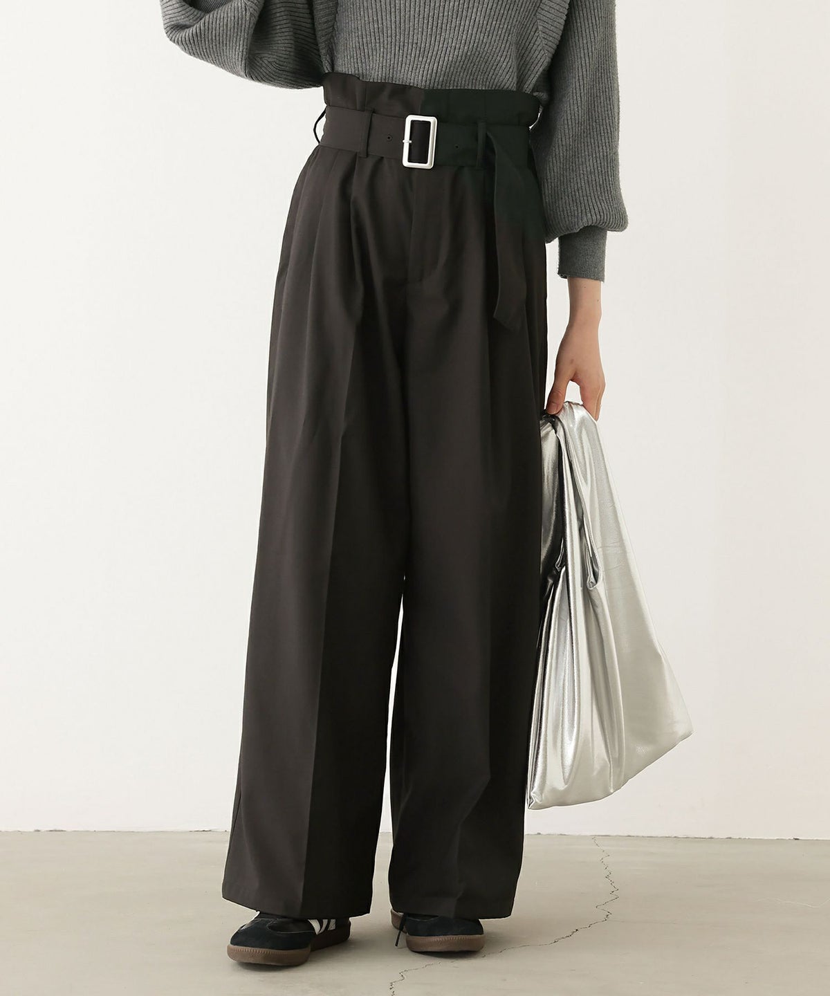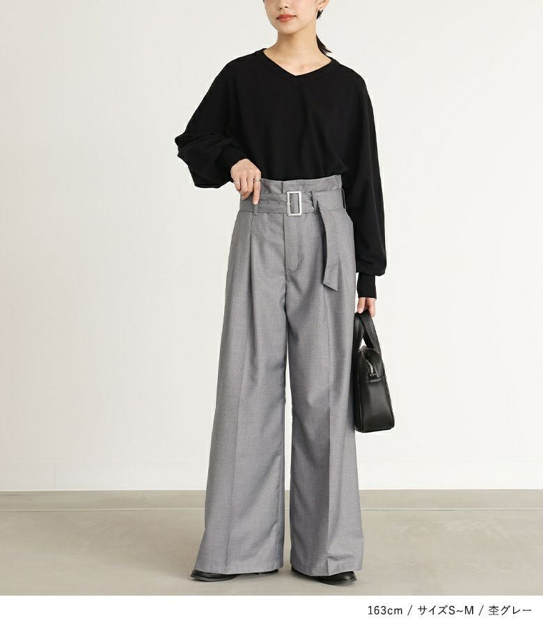 他の画像を見る 選べる3サイズ展開!付属のウエストベルトがポイントになったストレートワイドパンツ。 『n'OrLABELベルト付きハイウエストタックワイドパンツ』【メール便不可】【20】 ¥ 4,980 税込 4.50 (4)