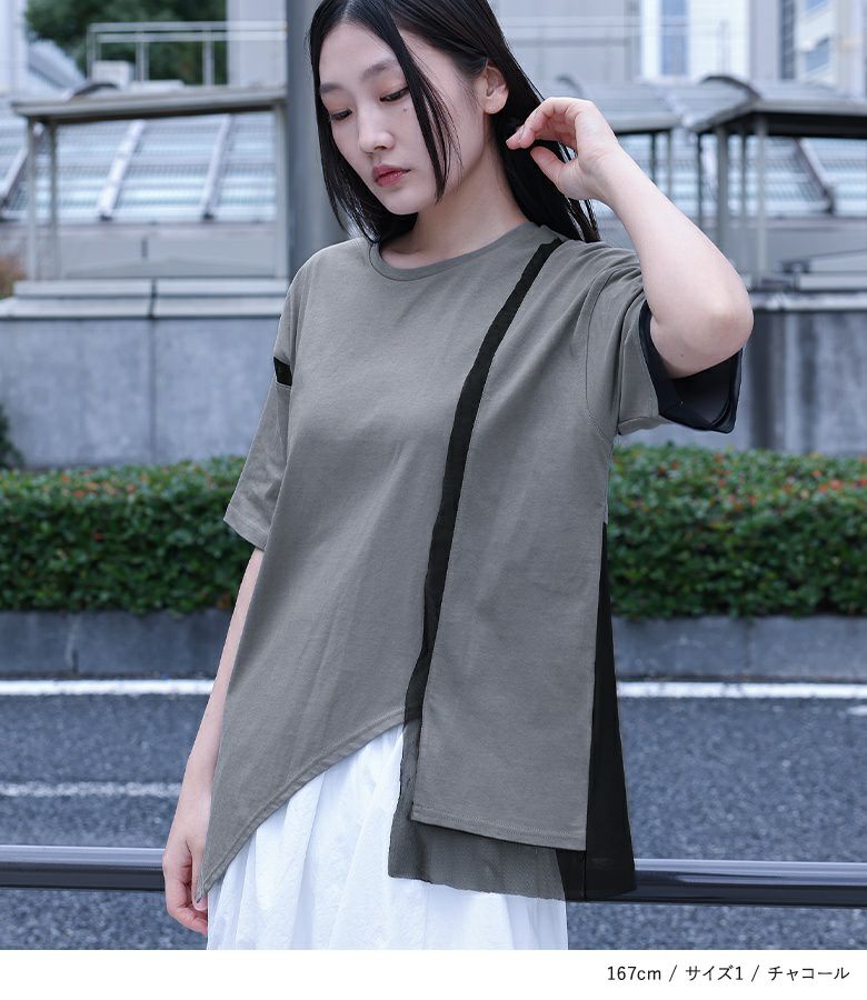 他の画像を見る 選べる2サイズ展開!チュール生地をドッキングしたデザインカットソー。 『kOhAKU冷感キープチュールドッキングアシンメトリーカットソー』※メール便可※【10】 ¥ 4,980 税込 5.00 (1)