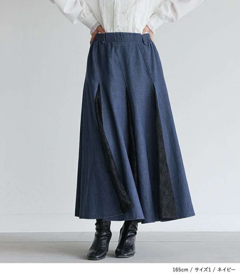他の画像を見る 選べる2サイズ展開!レースとデニムの異素材使いのスカート。 『somari imaginationデニムレース切り替えスカート』【メール便不可】【50】 ¥ 7,980 税込 4.00 (1)