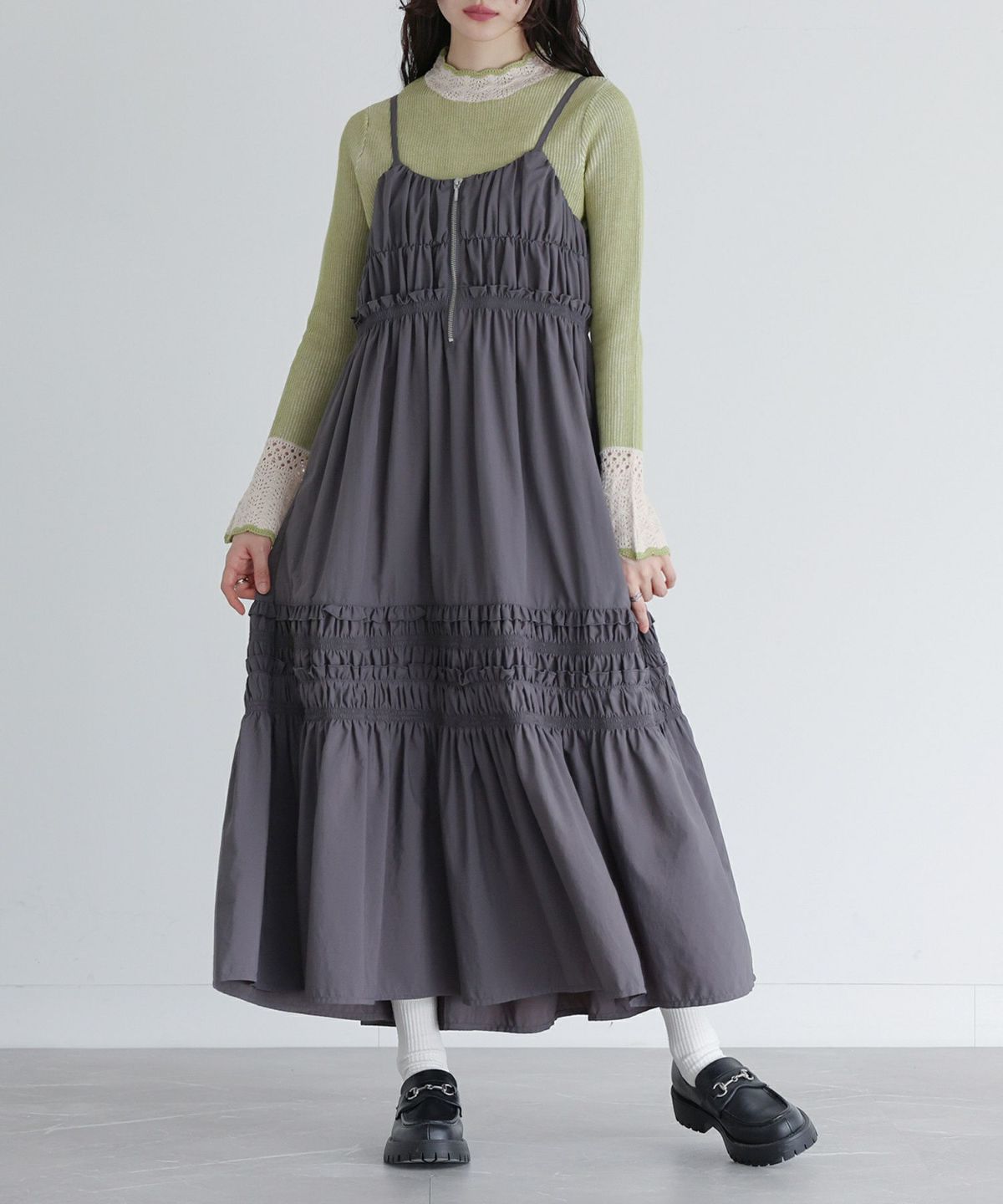 他の画像を見る 選べる2サイズ展開!フリルやギャザーを贅沢にあしらったキャミワンピース。 『somari imaginationフリルキャミワンピース』【メール便不可】【30】 ¥ 7,980 税込 4.00 (1)