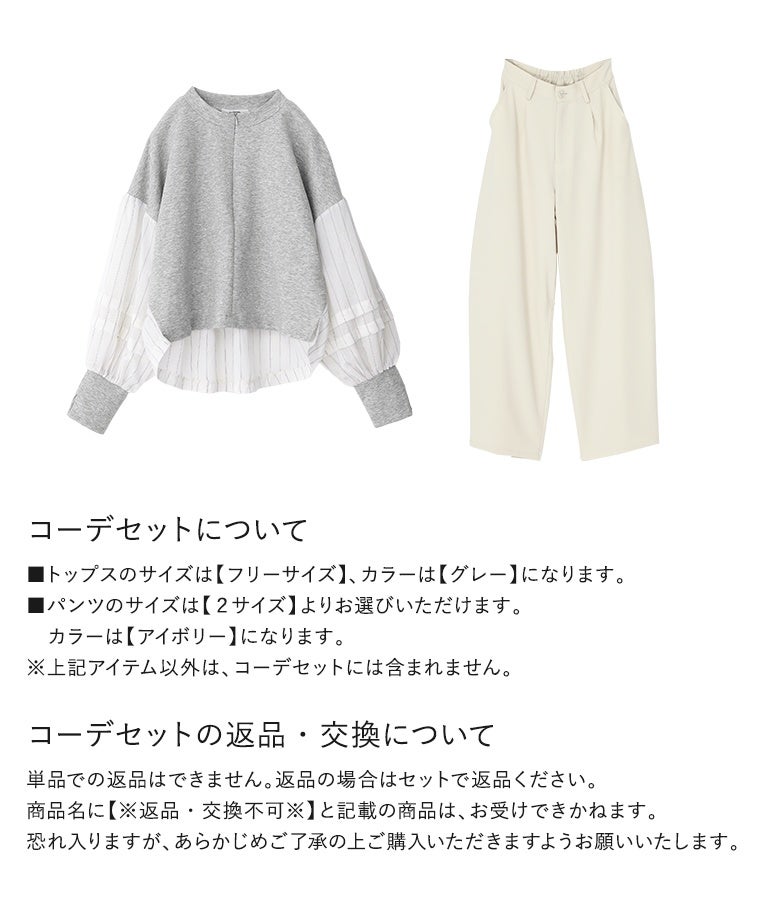 他の画像を見る 届いてすぐにお洒落に変身2点コーデSET♪ 『シアーストライプシャツドッキングプルオーバー×カーブツイルパンツコーデ2点SET』【メール便不可】【40】 販売開始前です。 販売期間 2026/03/11 10:00 〜 2027/03/06 23:59 ¥ 9,570 税込 (0)