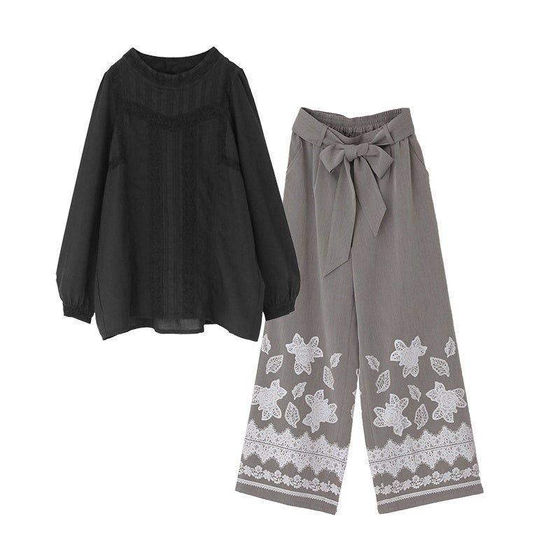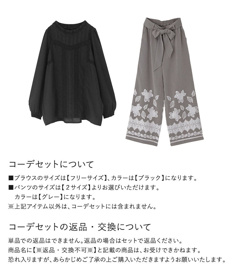 他の画像を見る 届いてすぐにお洒落に変身2点コーデSET♪ 『スタンドカラーレースブラウス×ウエストリボンレースプリントパンツコーデ2点SET』【メール便不可】【40】 販売開始前です。 販売期間 2026/03/09 10:00 〜 2027/03/06 23:59 ¥ 11,570 税込 (0)