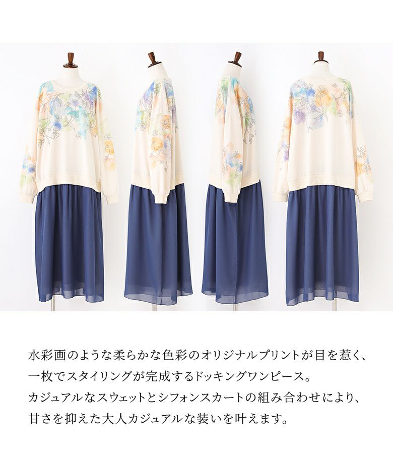 他の画像を見る スウェットとシフォンを組み合わせたドッキングワンピース。 【送料無料】『somari imagination花柄プリントスウェットドッキングワンピース』【メール便不可】【30】 ¥ 8,980 税込 (0)