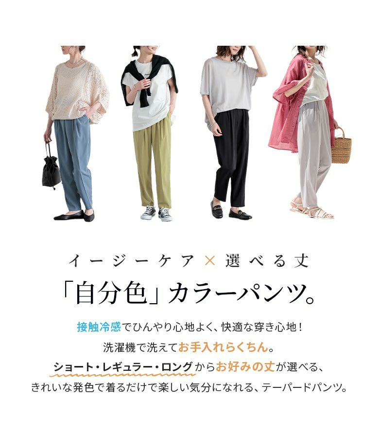 他の画像を見る 選べる着丈&サイズ展開!キレイもリラックスも叶える優秀テーパードパンツ♪ 『n'OrLABEL接触冷感センタープレステーパードカラーパンツ』※メール便可※【10】 ¥ 3,960 税込 4.42 (24)