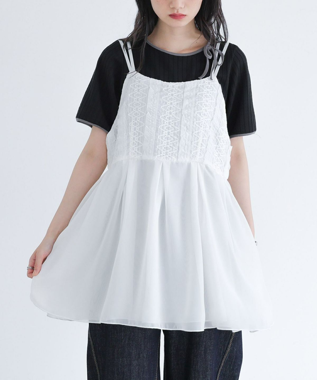 他の画像を見る 選べる2サイズ展開!身頃にフリル織柄生地を使用したビスチェ。 『somari imaginationシアーフリルキャミソールビスチェ』※メール便可※【10】 ¥ 5,980 税込 (0)