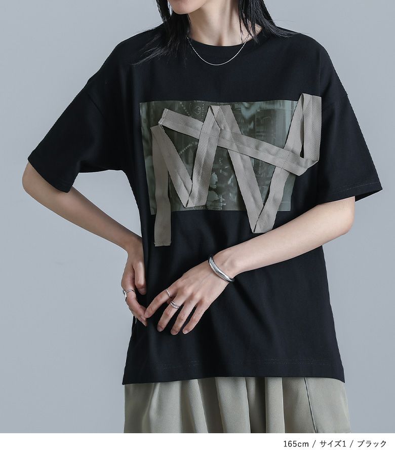 他の画像を見る 選べる2サイズ展開!風景プリントの上にテープをランダムに配置したTシャツ。 『kOhAKUランダムテーププリントカットソー』※メール便可※【10】 ¥ 4,980 税込 2.00 (1)