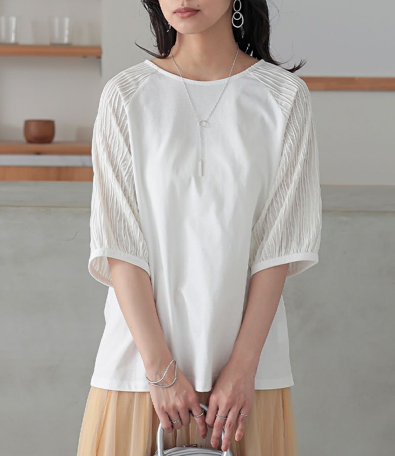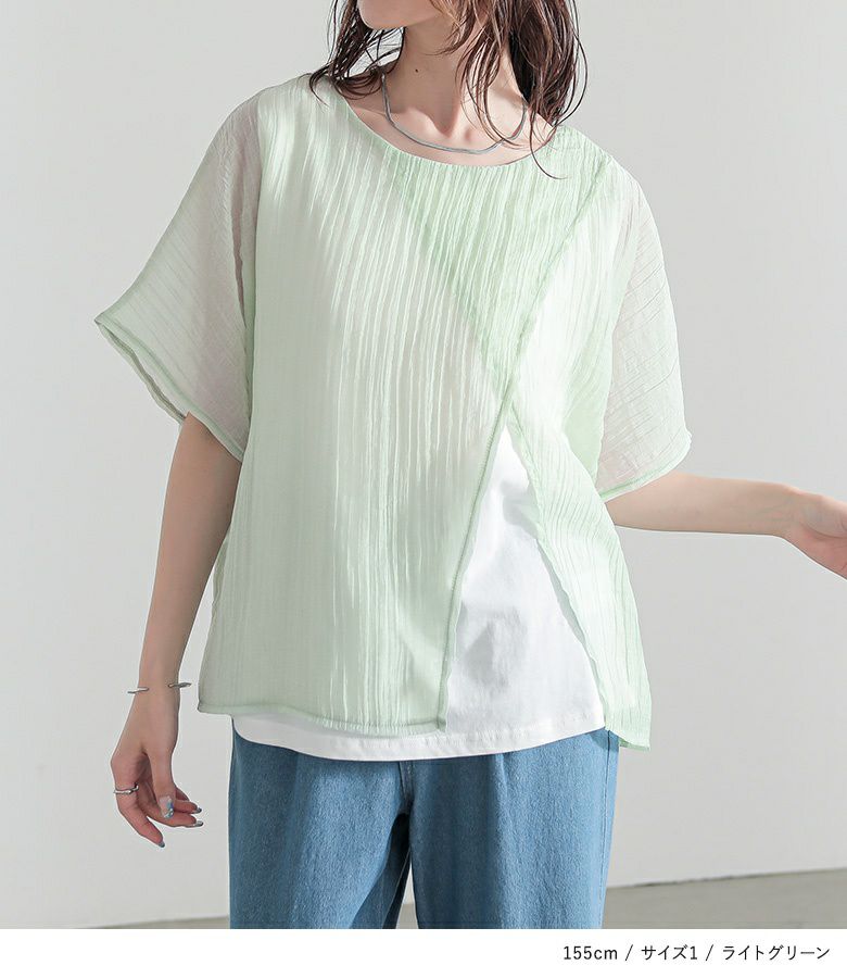 他の画像を見る 選べる2サイズ展開!シアー生地×カットソーをドッキングしたレイヤード風トップス。 『n'OrLABELレイヤード風異素材ドッキングトップス』※メール便可※【5】 ¥ 3,960 税込 4.00 (1)