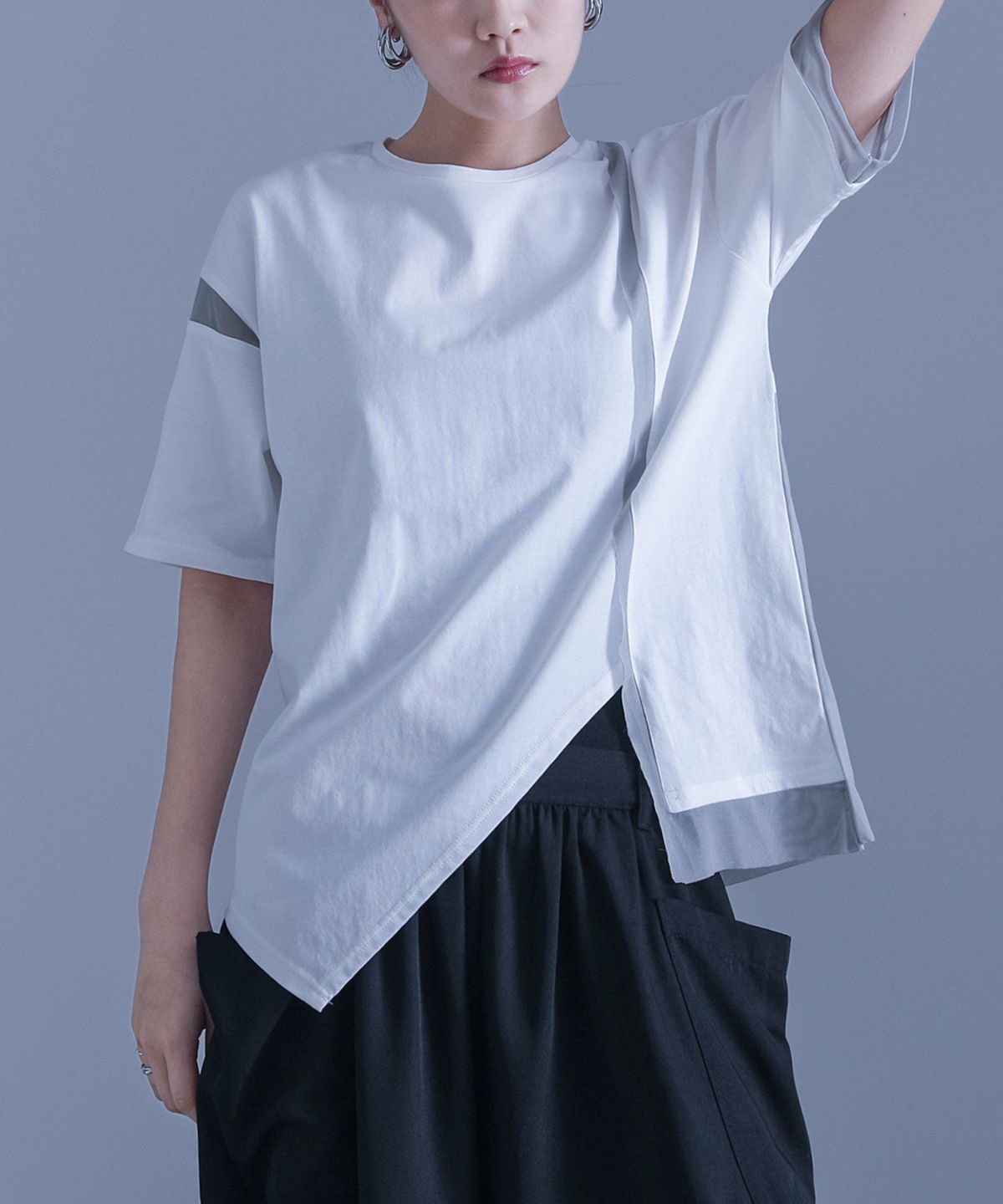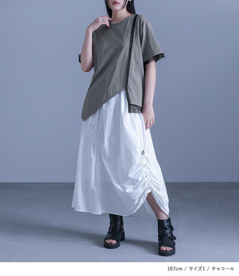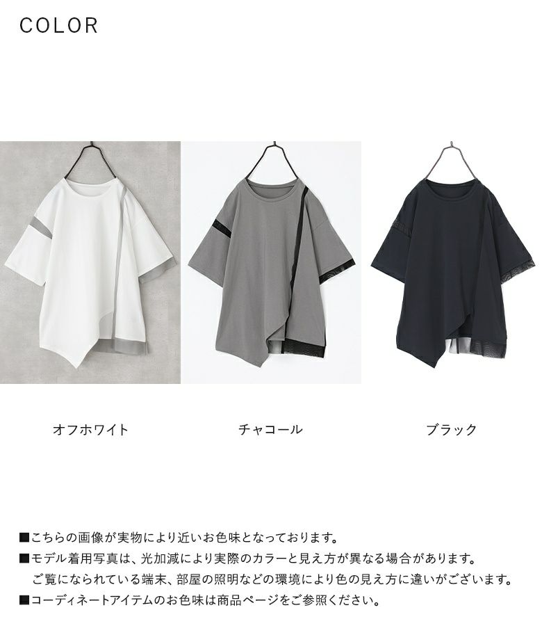 他の画像を見る 選べる2サイズ展開!チュール生地をドッキングしたデザインカットソー。 『kOhAKU冷感キープチュールドッキングアシンメトリーカットソー』※メール便可※【10】 ¥ 4,980 税込 5.00 (1)
