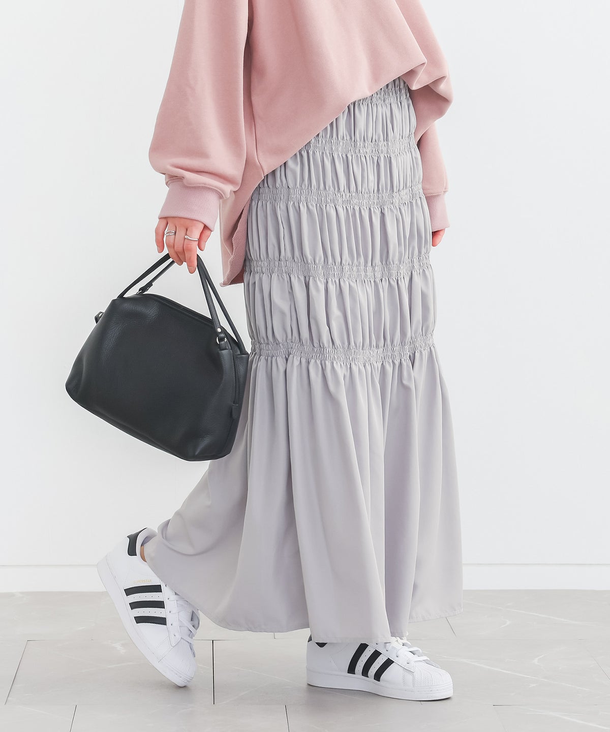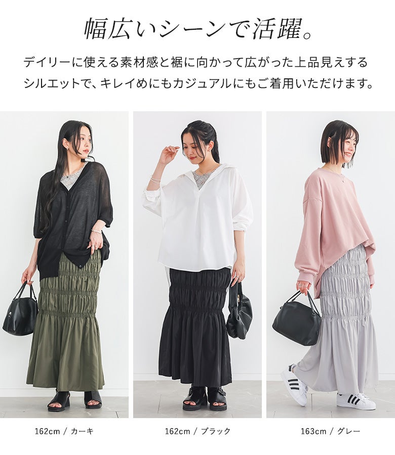 他の画像を見る カジュアルな素材感なのに"キレイ見え"するシャーリングデザインスカート。 『n'OrLABELシャーリングデザインスカート』※メール便可※【10】 ¥ 4,980 税込 4.50 (2)